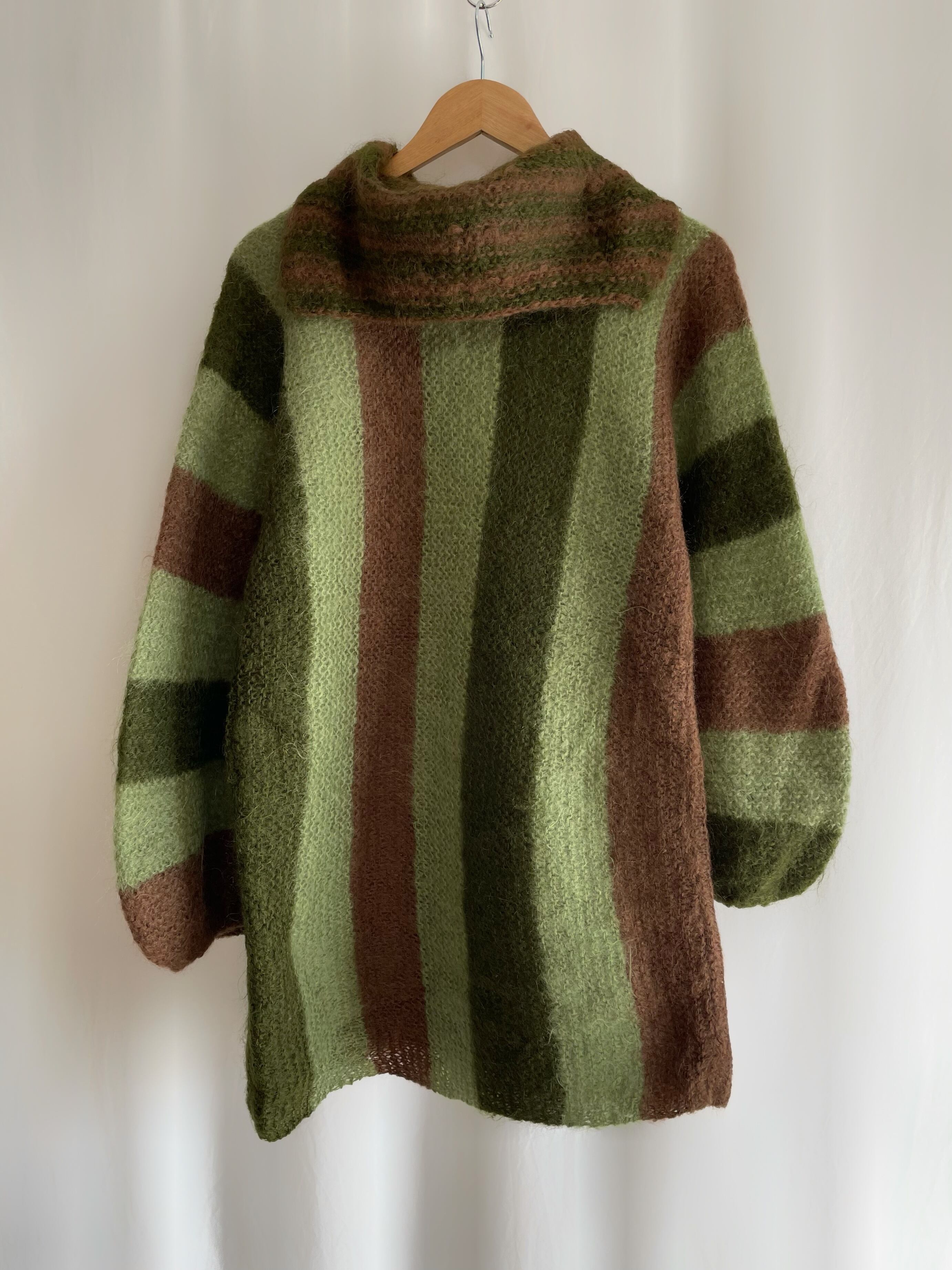 volume sleeve stripe mohair knit