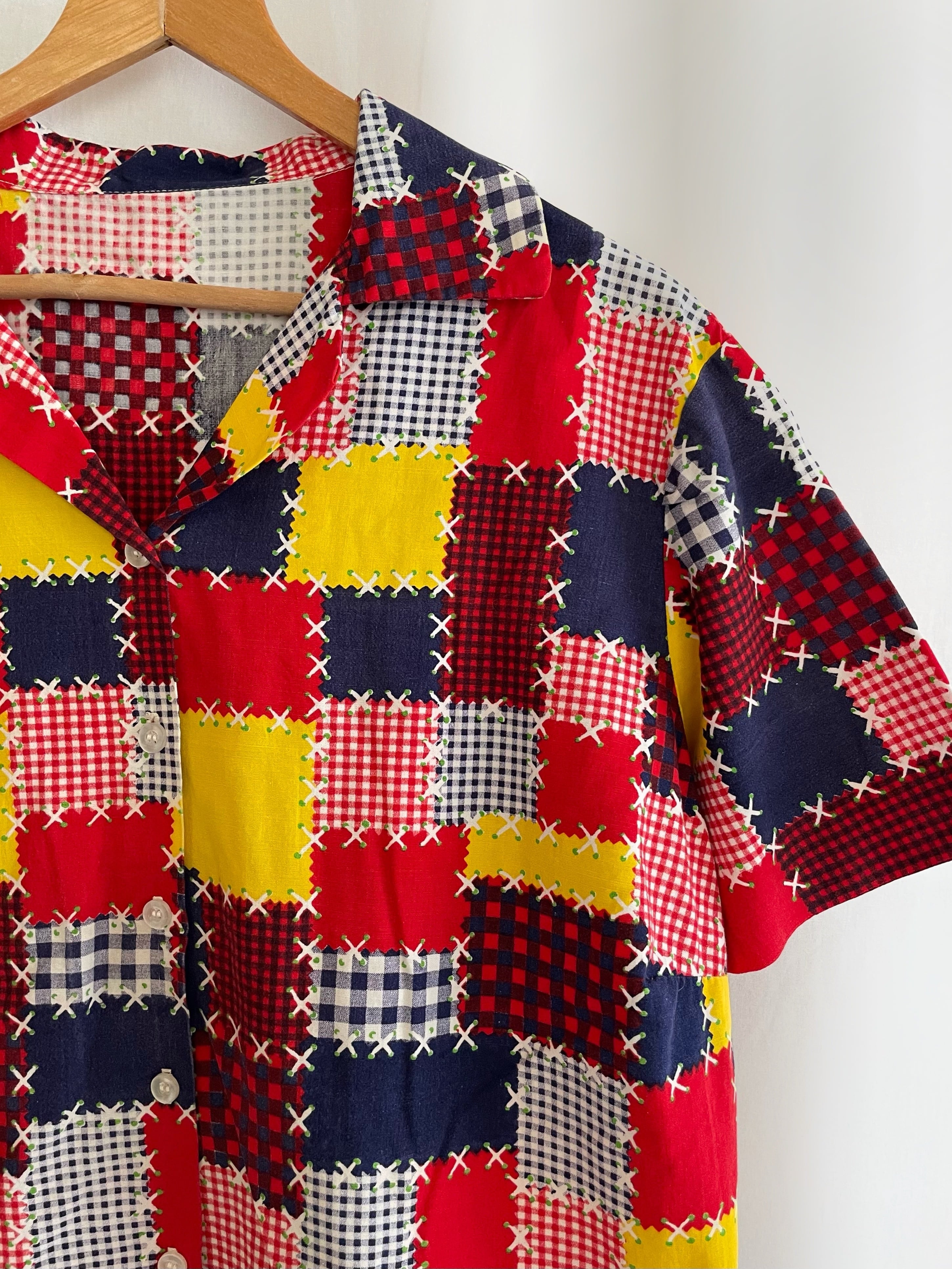 〜70s patchwork pattern s/s shirt