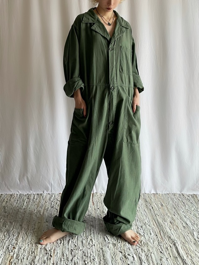 SIZE 肩幅:52cm 身幅:67cm 着丈:153cm 袖丈:59cm ワタリ:41cm 裾幅:26cm 股下:78cm ウエスト:100cm 着用者:165cm MATERIALS 素材:コットン Condition 数カ所に汚れ、ダメージが見られますが 古着慣れしている方であれば着用の際気にならない程度です . . . . . . . . . . ・used,vintage商品である事をご理解いただいた上でご注文ください。 ・ダメージ等がある商品は写真、conditionに記載しておりますが、目立たないダメージは記載していない場合もございます。 ・全ての商品が1点ものとなる為、ご注文後のキャンセル、返品、交換はできませんのでご了承ください ・コンビニ決済の場合、ご注文後2日以内にお支払いをお願いいたします。 ・サイズは平置きで計測しております。多少の誤差が生じる場合もございます。 ・ご使用のデバイスによっては商品の色味が実際の物とは多少異なる場合もございます。